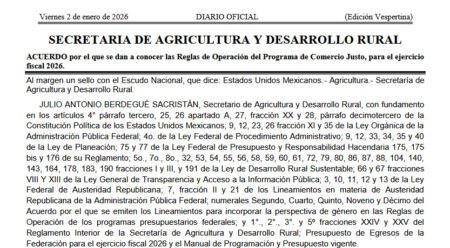 ![]() | Reglas de Operación del Programa de Comercio Justo, para el ejercicio fiscal 2026. Leer más |