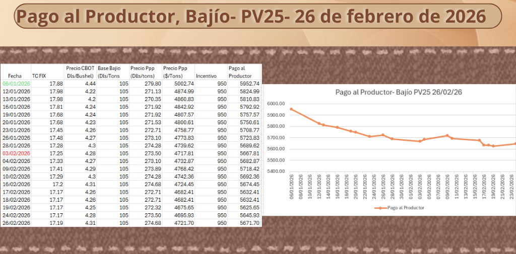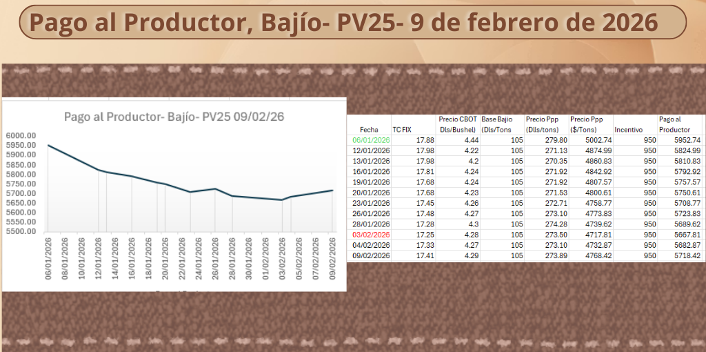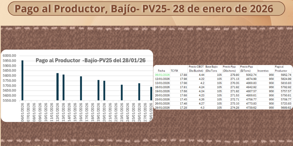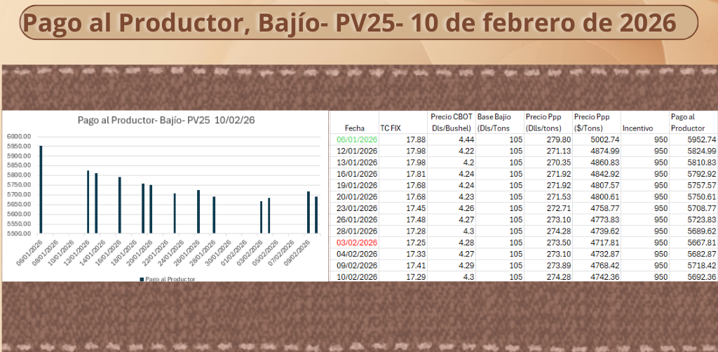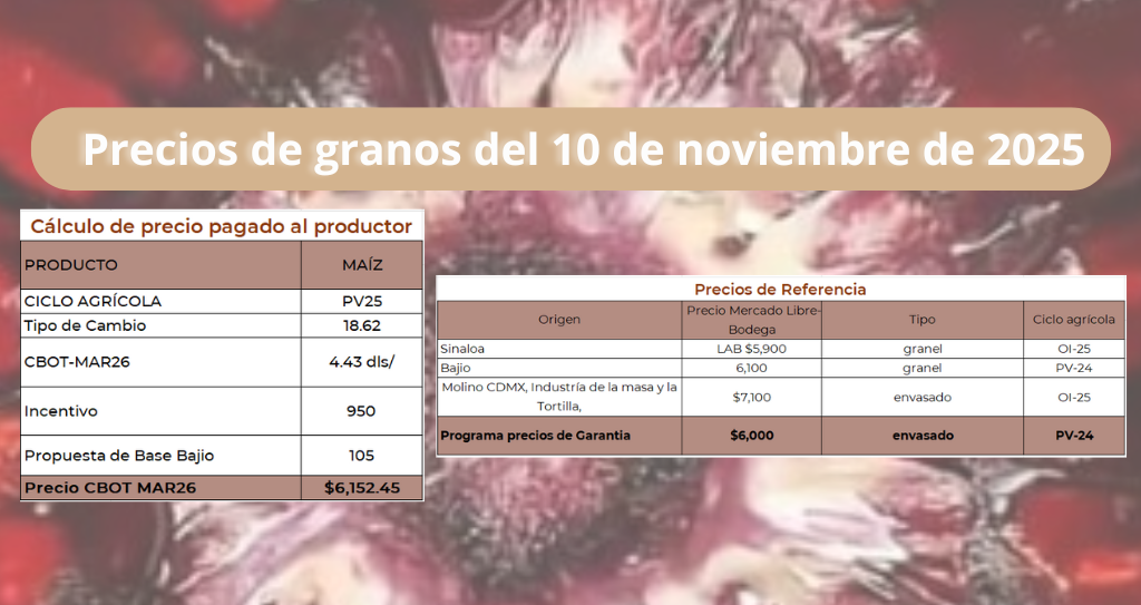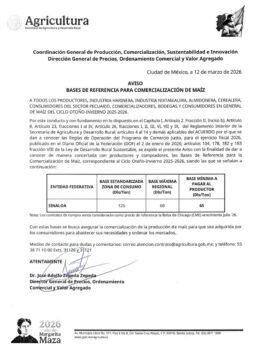 ![]() | Programa de Acopio P.V. 2025De octubre de 2025 al 30 de junio de 2026 maíz blanco a $7,200 y frijol a $27,000 por tonelada. |